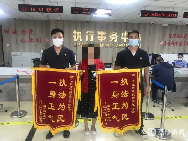 云龙法院执行局事务中心,被执行人韩某的母亲将印有“执法为民 一身正气”烫金大字的锦旗送到执行法官李甲洛、赵一手中。马某受雇于韩某公司期间发生严重工伤,韩某一直未履行赔付义务。执行法官李甲洛、赵一多次前往韩某经营的公司实地调查。经查,判决生效不久,新冠肺炎疫情爆发,对公司产生巨大冲击,公司经营困难关门停业,目前已无可供执行财产,案件执行一度陷入僵局。