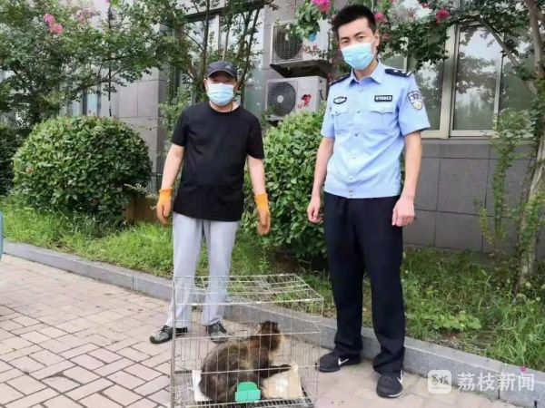 接警后,民警王维栋、刘磊快速赶到现场,发现一只野生动物蜷缩在角落处,状态萎靡,被现场的群众紧紧围住。民警一边快速疏散群众,一边找来纸箱小心翼翼安置,将其带回所里照料。