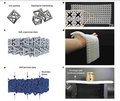 当处于天然状态时,这种面料易弯折,能披挂在复杂物体表面。处于压缩状态时,面料的联锁颗粒会挤在一起,坚硬度是松散状态下的25倍左右。最后得到的结构其最大载重量为自身重量的30倍以上。研究人员认为,未来的可重构面料需要贴合人体,或是能在形成复杂结构后固定住,而此次这种3D打印“软猬甲”的新特性,预示了穿戴式可重构结构的光明前景。