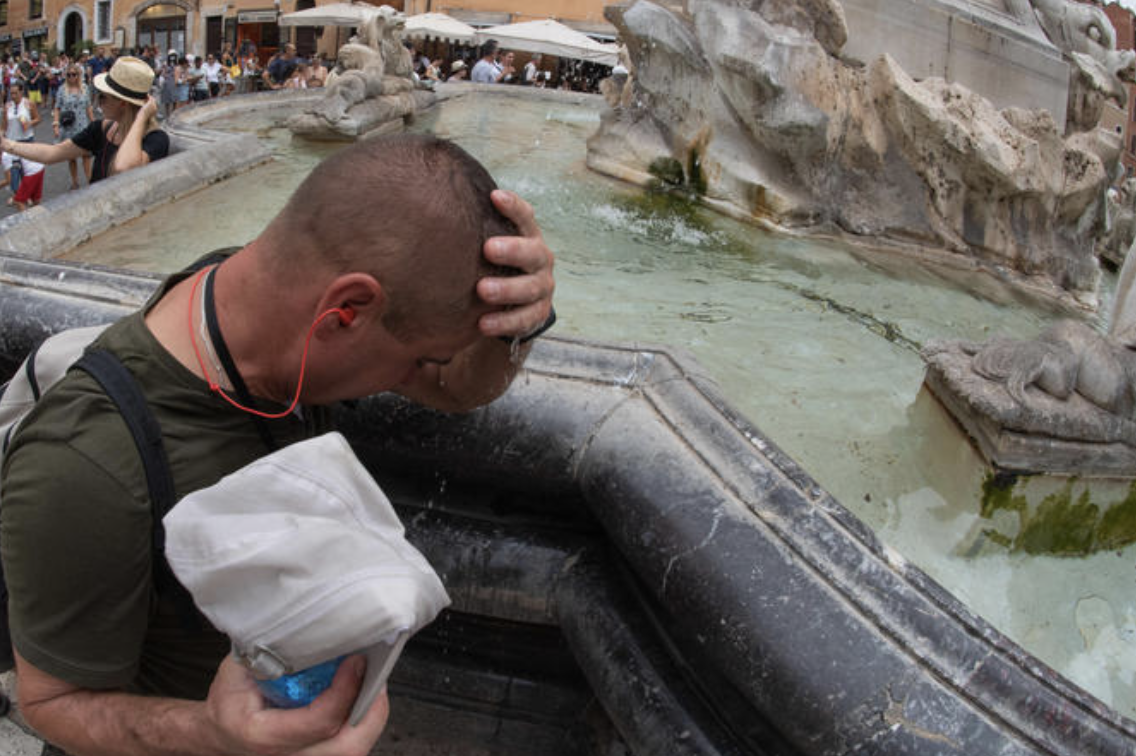 高温天气下罗马纳沃纳广场的游人。 安莎社 图