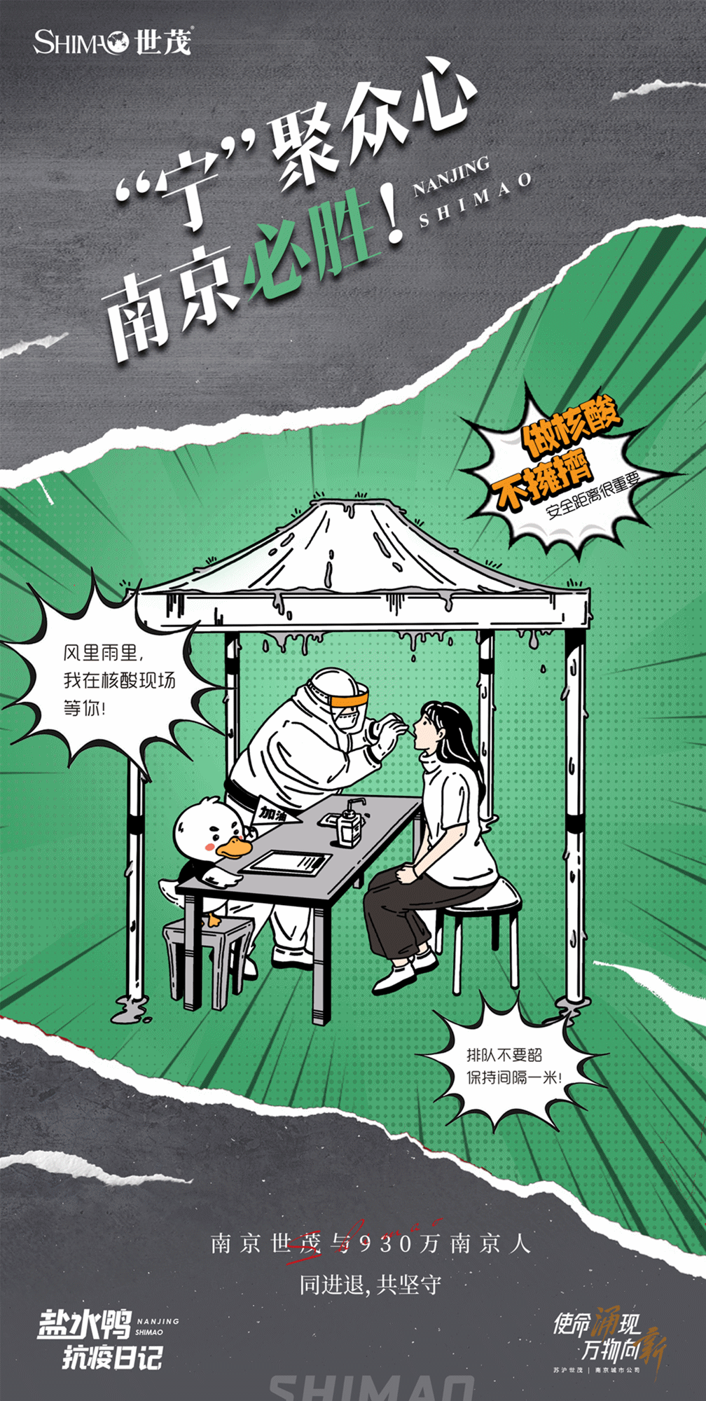 强力整合利用各方面资源,联合各方共同抗疫。南京城市公司不仅利用线上开展丰富多样的传播形式,第一时间上线盐水鸭防疫小贴士,抗疫问答小互动,用以引导业主正确、高效防疫,在线下也采取硬核措施迅速构建城市防疫阵地。