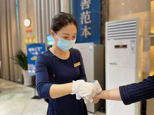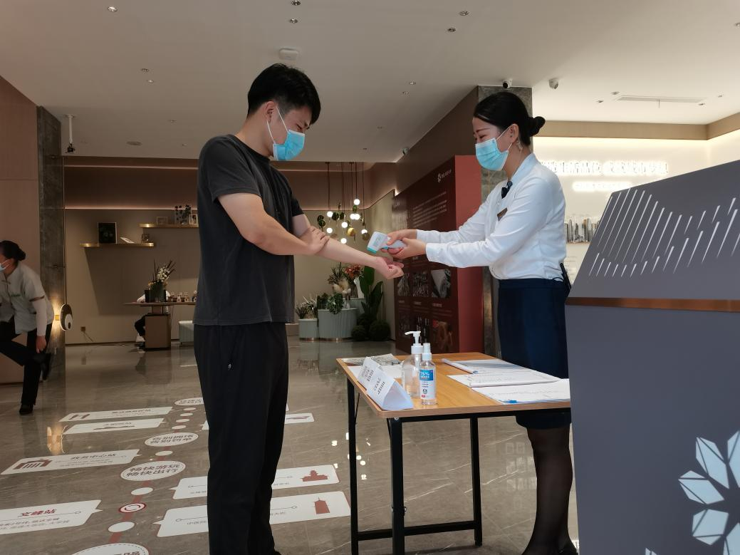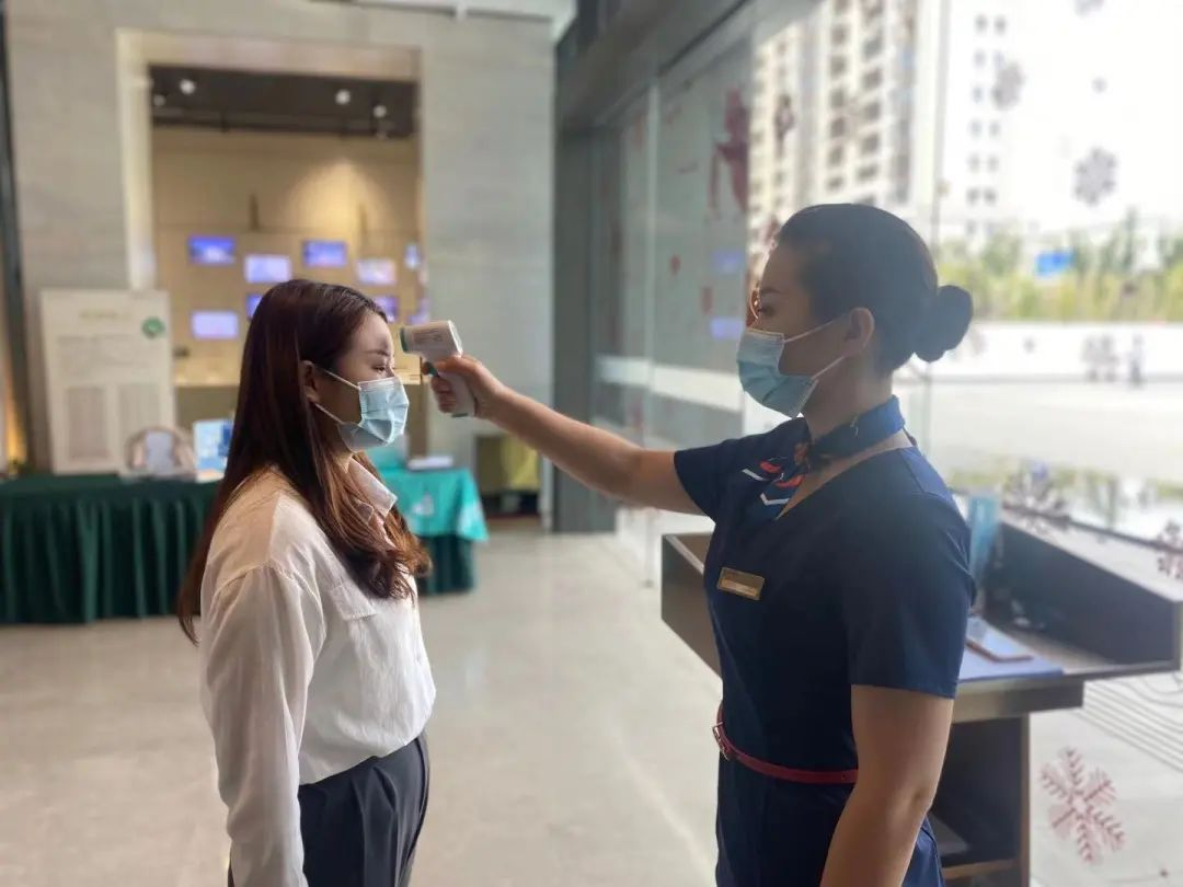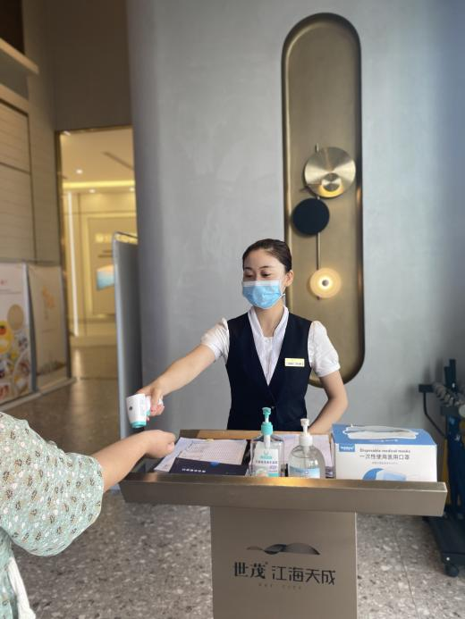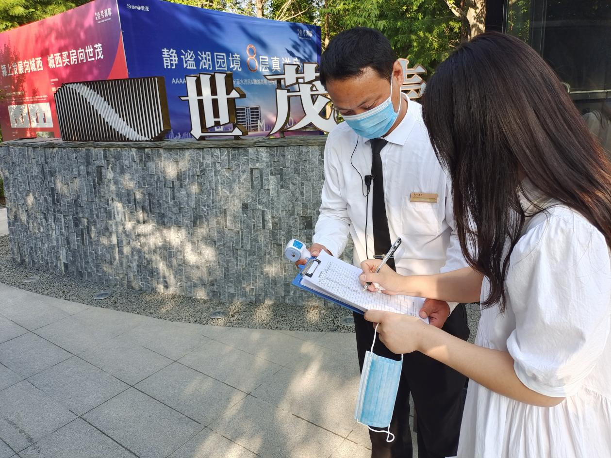 各项目的售楼处物业部门需按规定佩戴口罩,勤洗手、勤通风、勤消毒,做好个人防护,坚持每日测量体温。