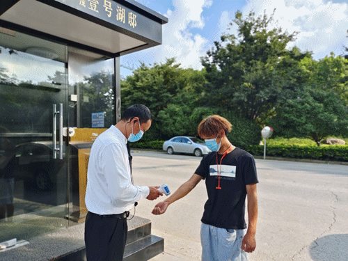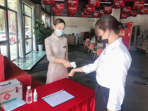售楼处保洁人员每日定时对售楼处进行消杀、洗手间为客户提供消毒凝胶、水吧人员使用一次性纸杯提供饮品、对开车来访客户,物业会对其车辆进行消杀,在售楼处入口处设置服务台做好扫码及体温检测工作,确保物业管理区域筑牢“外防输入、内防反弹”坚固防线。