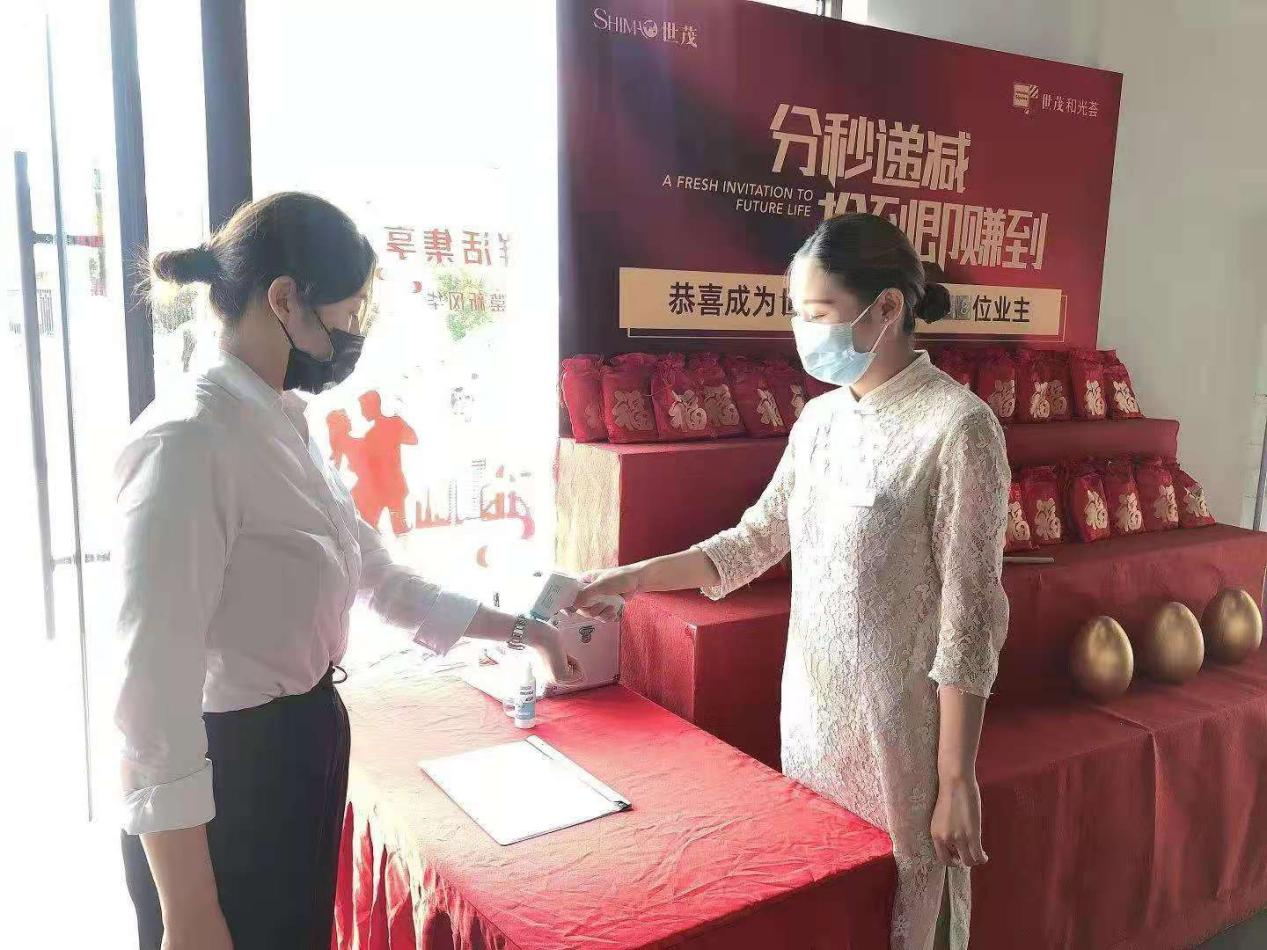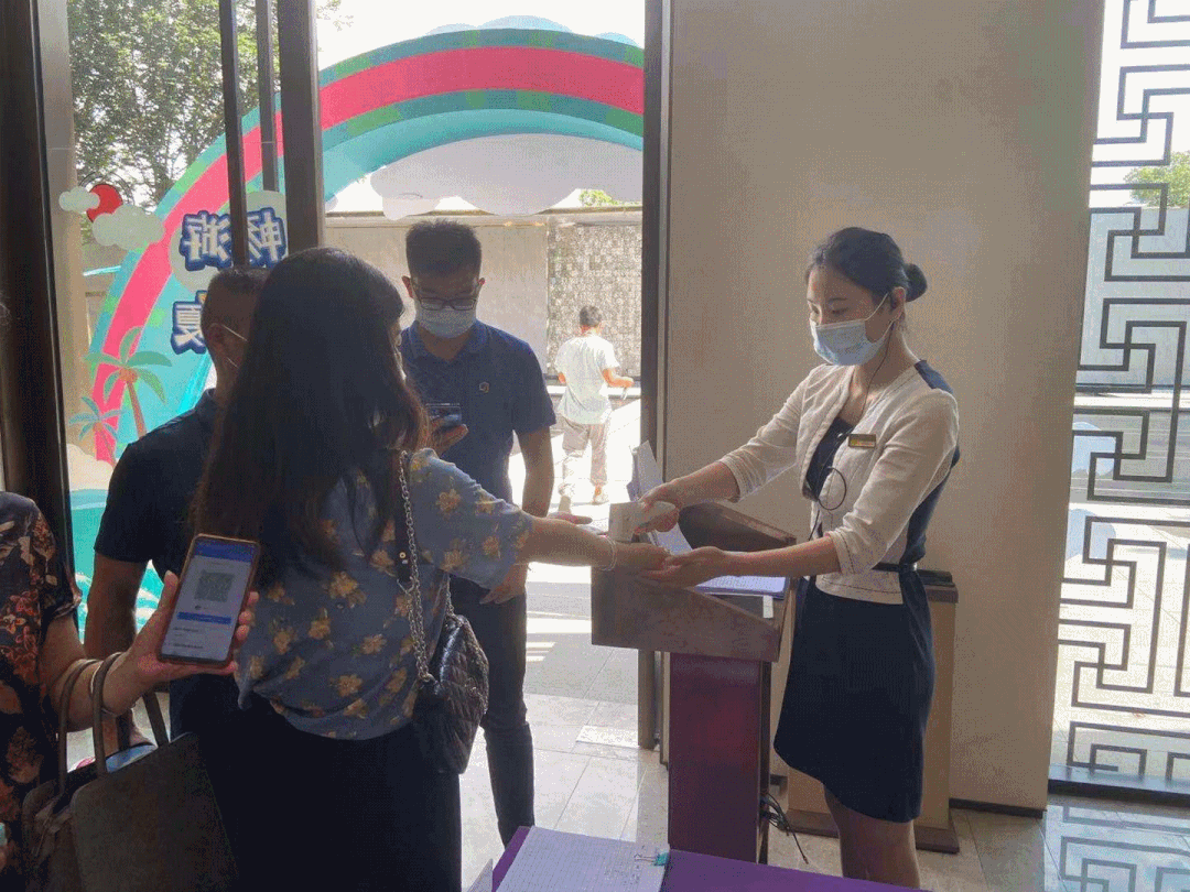 要求所有客户进入案场需配套口罩,测体温、消毒,并出示苏康码及14天行程码,体温超37.3℃或近期到访中高风险地区即不予进入案场。