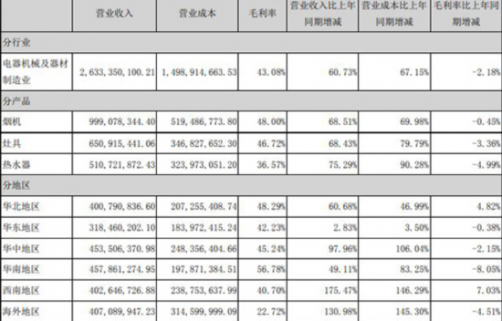 来源:华帝2021年半年度财报