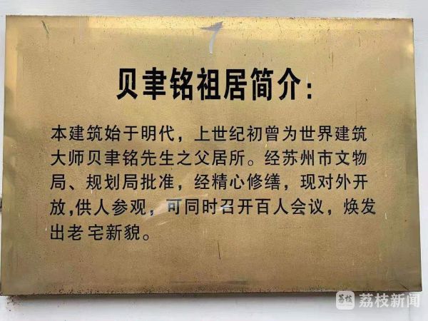 在贝聿铭祖居简介中,记者注意到目前的祖居是移建后的。旧址原位于大院正中,因长期疏于修缮,已千疮百孔。在本次房屋移建过程中,为更好地保存这座古建筑,再现其风貌。经苏州市文物局、规划局批准,遵照“修旧如旧”原作,移建、修复于此,并题名“玉颐堂”,现该堂作为玉器精品陈列及贵宾接待之用。落款是苏州玉石雕刻厂有限公司。