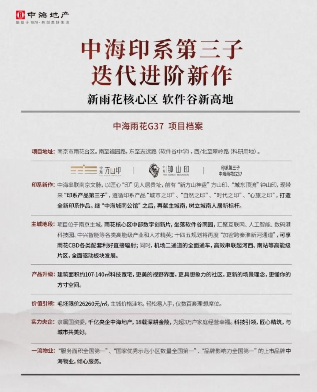 据悉,中海雨花G37地块案名暂定为“中海南山印”,这是中海在两桥板块的第二个项目,也是中海在南京的第三个印系作品。近日,项目档案曝光,户型建面约107-140㎡,预计10月公开售楼处,四季度上市,预计精装均价超3万/㎡(价格以最终销许批复为准)。