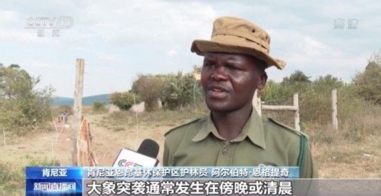 肯尼亚恩昂基休保护区护林员 阿尔伯特·恩格提奇:大象突袭通常发生在傍晚或清晨。大象非常聪明,它们将这些围杆推倒,然后进入农场吃掉庄稼。每当大象突袭事件发生,农民都会给我们打电话,巡逻队会立即响应,我们会设法让大象离开农场。