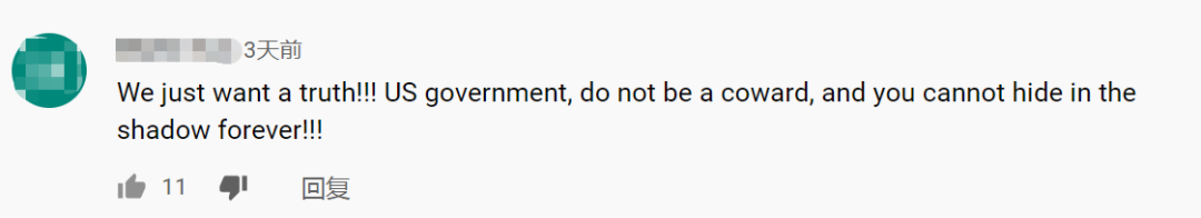 译文:我们只想要真相!!!美国政府,别像个懦夫一样!你不可能永远躲在阴影下!!!
