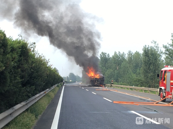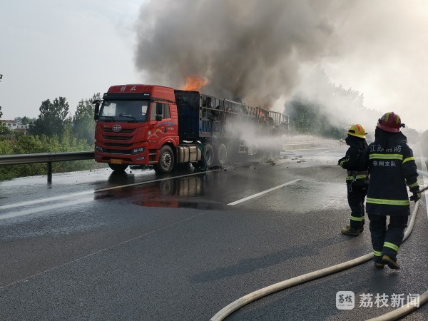 2021年8月10日,在G30高速霍连方向221k附近,发生一起货车自燃事故。江苏省交通综合执法局连徐支队第三大队协同消防、交警、排障、养护等部门,全力以赴抢险救援,保安保畅。