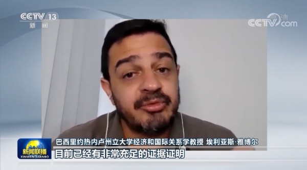 巴西里约热内卢州立大学经济和国际关系学教授 埃利亚斯·雅博尔:目前已经有非常充足的证据证明,在中国出现新冠肺炎确诊病例前,美国早已出现感染病,并且有人已经产生抗体。目前美国国内有很多问题亟待解决,各种矛盾冲突凸显,这种时候它就企图通过外部矛盾来缓解国内压力,这是美国自建国以来的一贯做法,树立一个外部敌人,进而嫁祸于人。