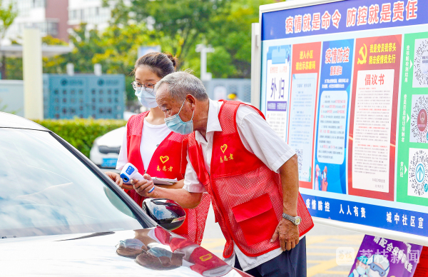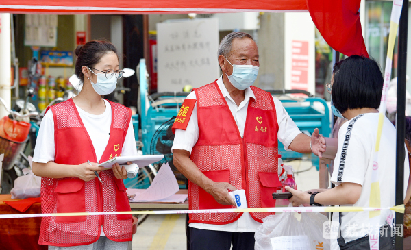 “小冉,这个要登记一下。”8月10日,宿迁经济技术开发区黄河街道的防疫服务岗,75岁的老党员蔡宗礼为进出居民测量体温,18岁的“00后”准大学生冉雨婷检查苏康码。