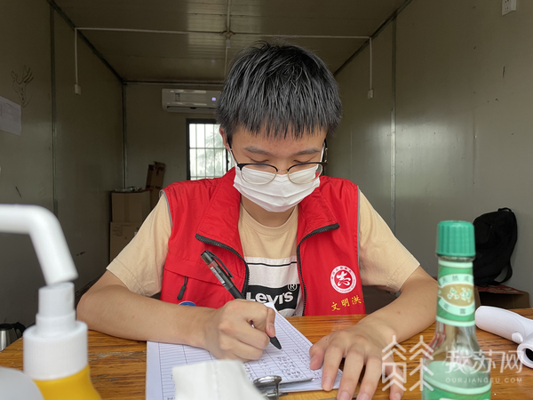 徐明海:“00”后志愿者,2000年12月出生,金陵科技学院网络与通信工程学院大二学生。疫情刚发生的时候正在驾校学车,7月26日考完科三后就立即报名做了青锋村卡口执勤夜班志愿者。
