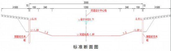 工程内容:道路全长1589m,工程内容包含道路、桥梁、排水及景观、照明、交通标志标线等附属工程。