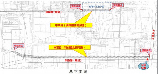 工程内容:本项目起于气象站西侧环绸都大道东侧辅道,终于澜溪二路,全长约1.35km;宽8米;含道路、排水、交安、照明及附属等工程。本项目由两部分组成。第一部分河道位于规划科创路北侧,河道全长1536m,河道上口宽20m,含河道开挖、新建驳岸等工程。第二部分河道位于规划溪锦路北侧(现盛泽镇庄平村工业小区内部),河道全长305m,河道上口宽20m,含河道开挖、新建驳岸、新建桥梁等工程。