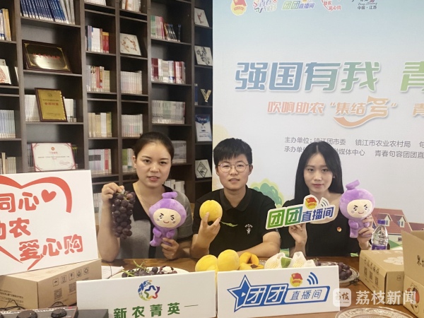 “我们的葡萄口感超好,现在买两箱可以享受 9 折优惠,所以说还是非常划算的 ……”在句容茅山镇丁庄万亩葡萄合作联社的“团团直播间”里,南京信息工程大学的李瑷蔚,正忙着为网友介绍丁庄的葡萄,推荐大家购买品尝。不远处的葡萄分拣中心,青年志愿者们则帮果农们分批打包葡萄发往各地……