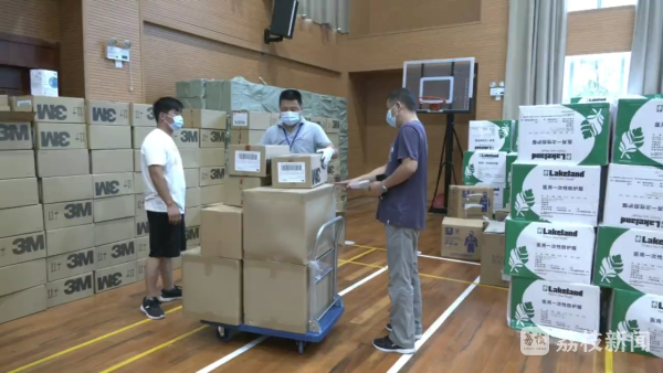 最近,扬州市一直组织居民进行大规模核酸检测,作为防疫抗疫的重要一环,相关医疗物资调配可谓时间紧任务急。今天上午,记者在邗江美琪学校的体育中心看到,偌大的场馆内已堆满了口罩、防护服、采样管等医用物资。邗江区发改委副主任严海东介绍:“每次核酸检测大概是300万的物资,需要100车。截止今天,我们邗江区发改委,采购了近4000万的物资,保障一线,任务量很重,我们都能够按照时间进度,指挥部的要求,及时分发到位。”