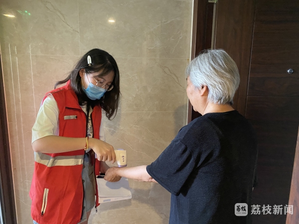 “我可以为控制疫情做哪些事情呢?”七月中下旬的一天,褚纹瑶看到自己居住的徐州翡翠城社区群里,有人发布了一则志愿者招募通知,条件是时间充裕、细致耐心、能提供心理疏导、党员团员优先。看到“党员团员优先”,又想到疫情防控的紧迫和压力,成长在党员家庭的褚纹瑶毫不犹豫地报名参加了社区疫情防控志愿者的队伍。