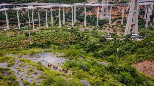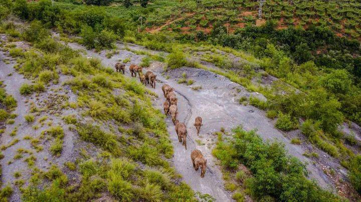 6月6日在昆明市晋宁区夕阳彝族乡拍摄的野象(无人机照片)