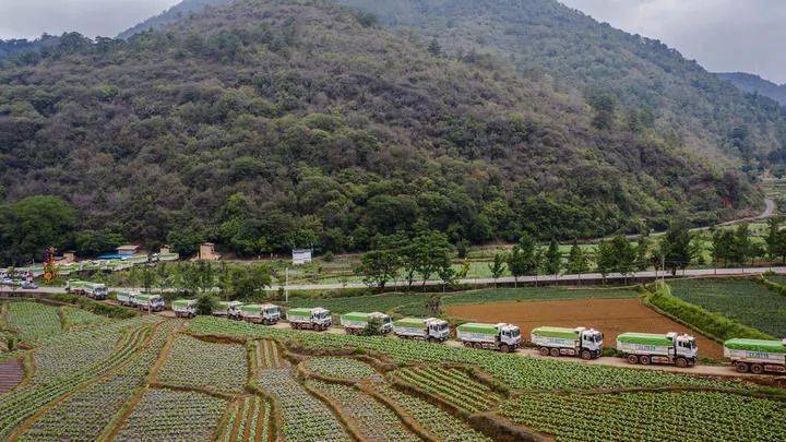 这是6月9日在云南省昆明市晋宁区夕阳乡拍摄的负责堵路的渣土车队。新华社记者 胡超 摄