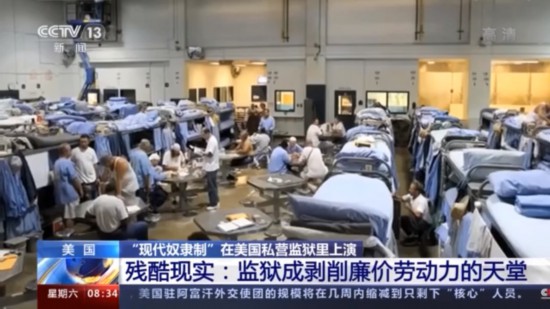 一段时间以来,美国一些反华势力大肆编造所谓新疆实施“大规模强迫劳动”的谎言,并以此借口滥用长臂管辖、出口管制措施。而据2019年的数据显示,美国共有200多家私营监狱,替政府关押的犯人近12万,监狱当权者将犯人当作廉价劳动力进行使用。在政府的放纵下,私营监狱成了美国实行“现代奴隶制”的“独特风景线”。