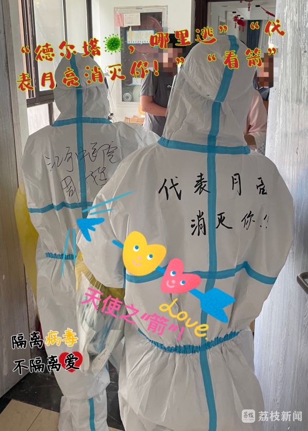 护士长任月和护士周娟,“用天使之箭消灭你——可恶的德尔塔!”隔离病毒绝不隔离爱,七夕之际,为了大家的健康核酸采样不能少,这是白衣天使对居家隔离人群最直接的“表白”。