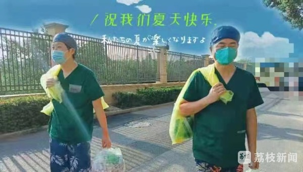来自骨伤科的吴乔和普外科的华帅两位医生是核酸采样队中最亲密的队友,被同伴戏称绝佳“CP组合”,自带喜感的“华乔组合”给这个七夕的定义是“世间美好除了爱情还有一同担起过使命的兄弟情!”