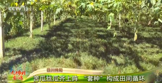 我们看到葱绿的麦冬长势茂盛,架上的苦瓜也非常水灵,这种复合种植的方式也是当地大力推广的,生态、环保,带给农民朋友的效益也更好。