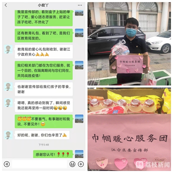 8月12日,宣传部巾帼暖心服务团与前方点位沟通联系,通过与隔离人员沟通,了解到酒店内的孩子们想要零食,暖心服务团立刻行动起来,为孩子们购买了冰淇淋、面包、养乐多、薯片、果珍等零食送至隔离点。一位孩子妈妈感激地说,瞬间感觉我还能再坚持一段时间。