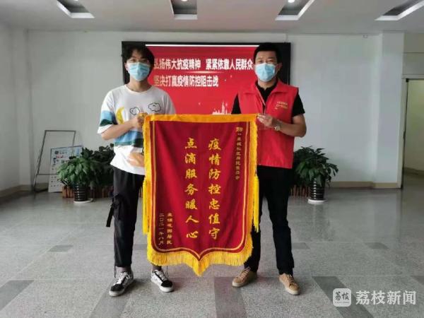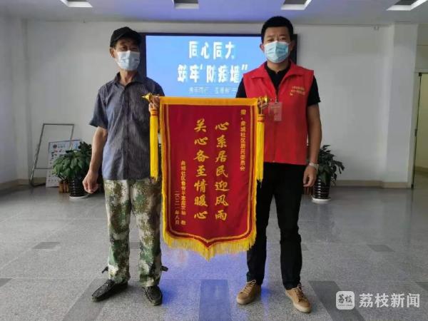 “社区网格员给予我无微不至的关怀,让我深切感受到了隔离不隔爱......”盘锦花园居民周群昂送来一面“疫情防控忠值守 点滴服务暖人心”的锦旗对社区表示感谢。周群昂居住在盘锦花园小区,因有禄口机场经停史,需进行居家隔离。因周群昂平时不擅长烹饪,面对如此“特殊”的居家对象,盘城社区“五包一"小组为他提供点对点服务,网格员每天提醒他一日三餐均衡饮食,及时帮他将餐食、快递等生活用品送到门口,为他清理生活垃圾。居家隔离期间,周群昂也曾出现过焦虑的情绪,网格员季昊了解情况后对他进行心理疏导,给他加油鼓劲。正是这些无微不至的关怀,让他主动请缨,"等我隔离结束,我也要报名防疫志愿者,为疫情防控贡献出自己的一份力量!"