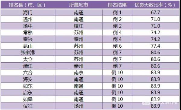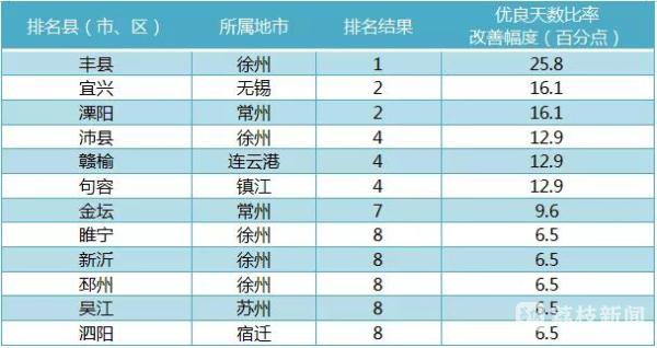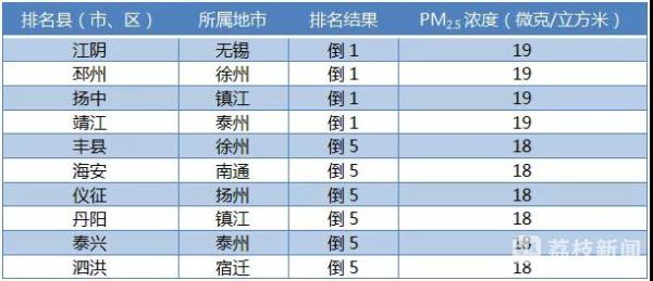 依据《江苏省县(市、区)PM2.5浓度排名规程(暂行)》及《关于公布江苏省县(市、区)省控环境空气质量监测点位的通知》(苏环办〔2018〕535号)规定的排名要求,省生态环境厅今天向社会公布了54个县(市、区)最新空气质量状况排名。