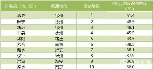 PM2.5浓度改善幅度相对较好的前10位(1—10名)依次是: