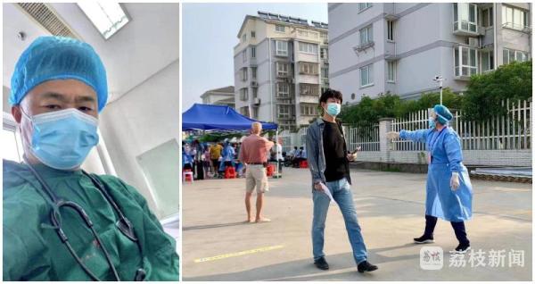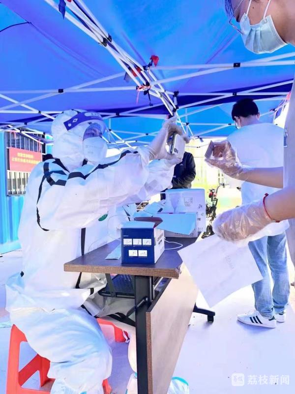 闫建军的妻子是一名社区工作人员,疫情发生以来,她和所有社区工作人员一样,走在了抗疫一线。闫建军也义无反顾地加入到扬州市职业大学教职工疫情防控志愿者的队伍中,在经过社区培训后,已参与多轮核酸检测的身份证信息扫描工作。信息扫描工作看似轻松,但是在近期的高温天气下,穿着防护服的他在两小时换班时间到达后早已全身湿透、体力难支。他说,亲身体验后更能理解医护人员的辛苦了,但是能和爱人共同穿上防护服这一“情侣装”,也算是一种陪伴和支持。