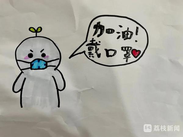 志愿工作十分辛苦,几小时下来,说了太多的话的她们,嗓子干哑,热得浑身发烫。女儿苏苏听说妈妈做了志愿者后,特意画了两幅画,画上可爱的卡通小人提醒大家戴口罩,并喊着加油。