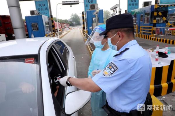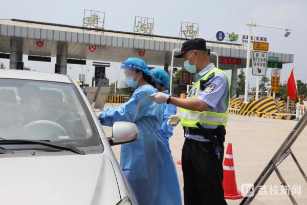 “请驾乘人员准备好健康码和行程码,前方车辆较多,排队时间长,请不要着急,耐心等候。”在建湖九龙口高速收费站查验点,这样的提示语,建湖交巡警大队机动执法中队中队长张翔一天不知道要重复多少遍。