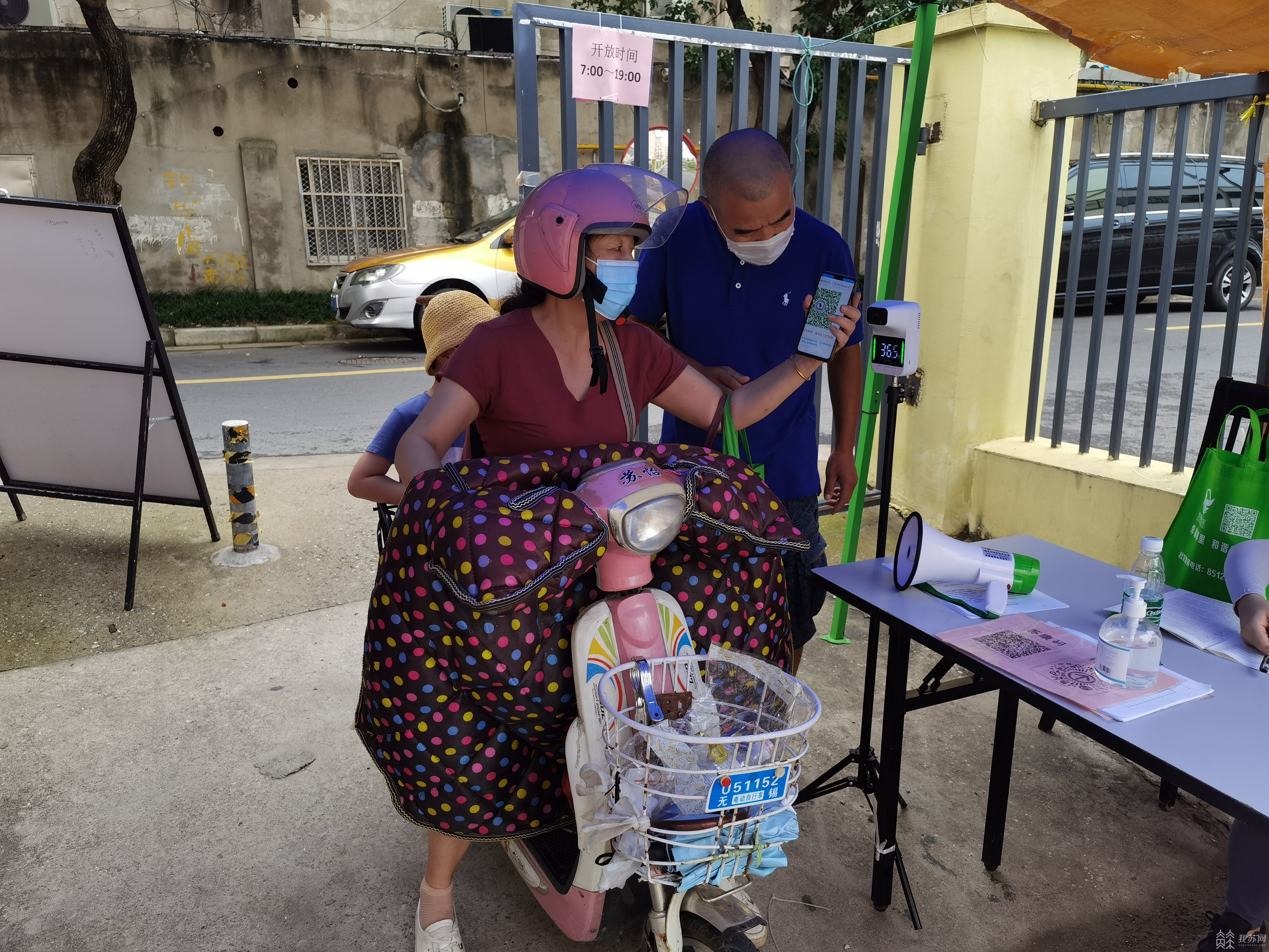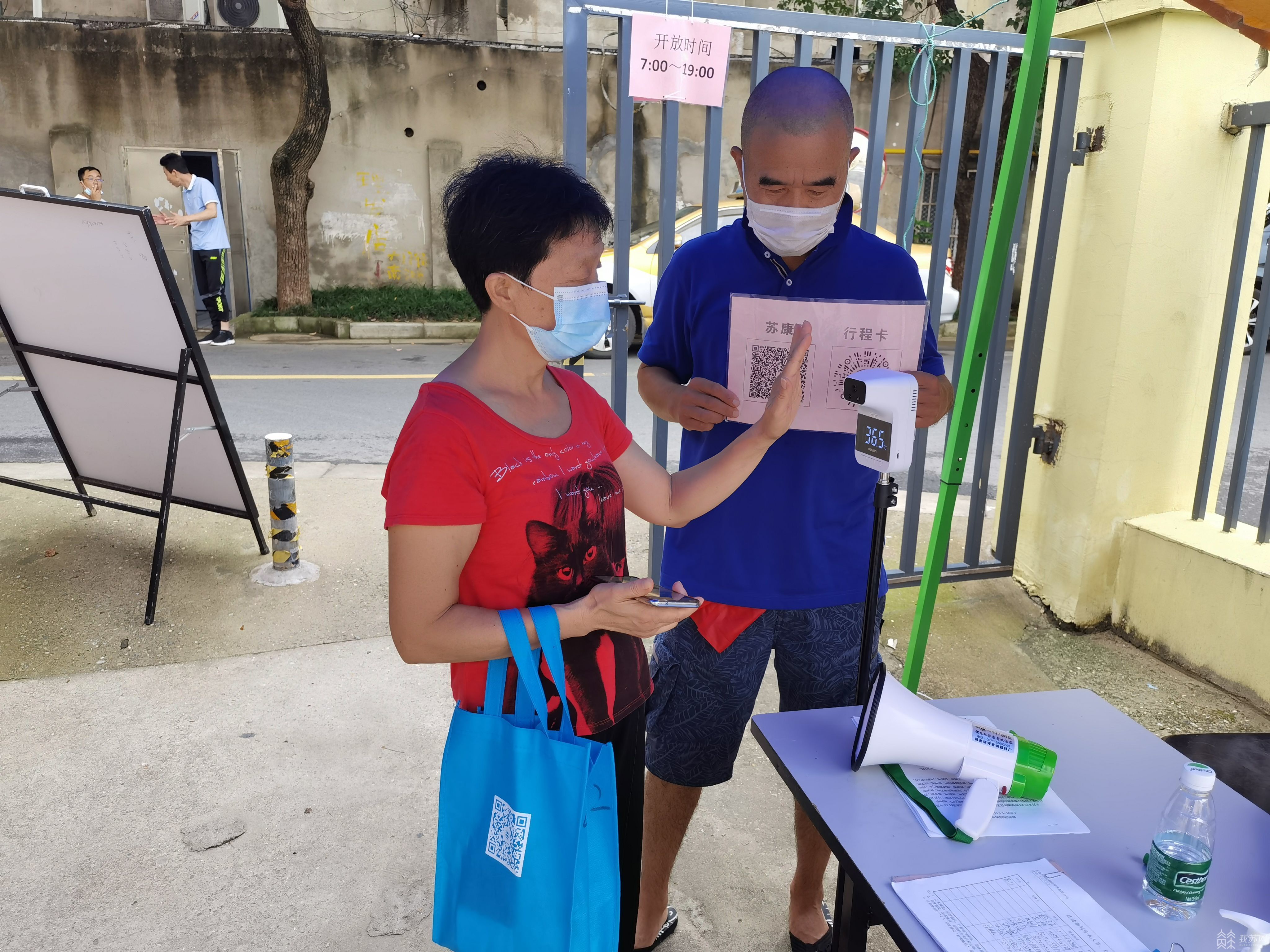 “平时这个进出口没啥人,但是早晚高峰时,居民会变多,有的时候会有点来不及。”驻守在稻香新村北门出入口的志愿者小朱说道,“他的加入,让我轻松不少。”在稻香新村防疫卡口,有居民进出时,陆鸣总是立即迎上去,却并不说话,示意居民有序接受志愿者的扫码测温。
