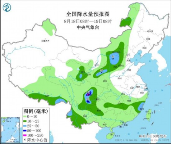 8月18日8时至19日8时,江南东南部、云南西部和南部、贵州西部、四川盆地中西部、西藏南部及青海东部、甘肃南部、陕西北部、山西中北部、河北西部、内蒙古中部等地的部分地区有中到大雨,其中,四川盆地西部等地局地有暴雨或大暴雨(100~160毫米)。