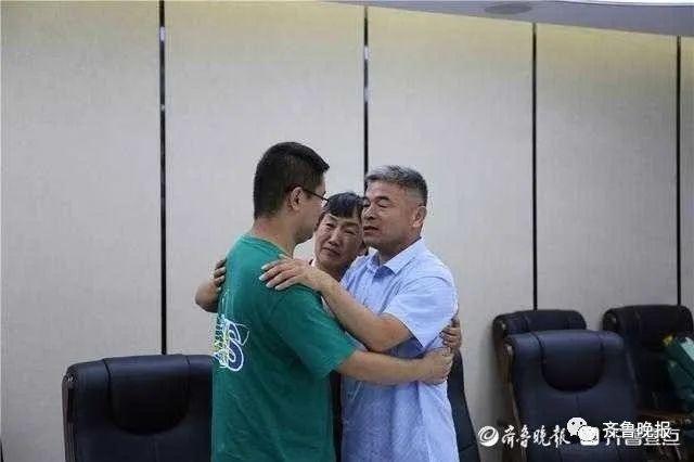 在公安机关举行的认亲仪式上,已经头发花白的郭刚堂一只手紧紧抱住已经比自己高出半个头的郭振,一只手去抹眼泪——人在最激动的时候,会哽咽到说不出话。