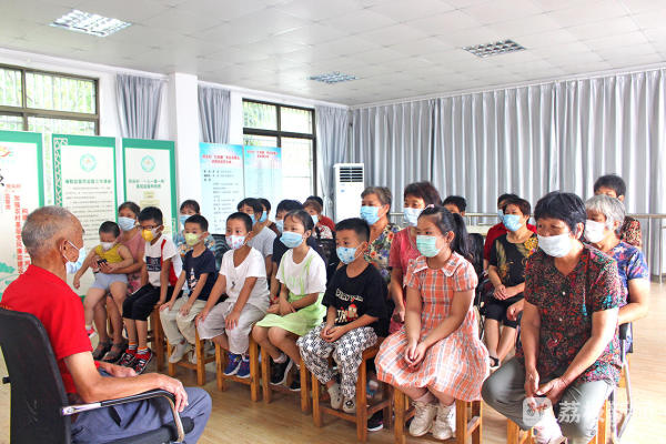 7月15日,民乐村邀请该村80岁退伍老兵顾祥保讲述“退伍后开挖七干河,造闸门筑大坝”的优秀事迹,号召年轻党员、少年儿童学习共产党人勇挑重担、一心为民的精神。