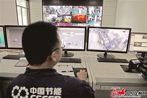 楼上的监控室内,工作人员正在遥控指挥焚烧车间。点击鼠标,医疗废物就自动从斗提机内倒入锅炉中,开始焚烧,燃室内最低控制温度为1100摄氏度。在这里,一根根核酸检测棉签变成灰渣,然后进行填埋处理。