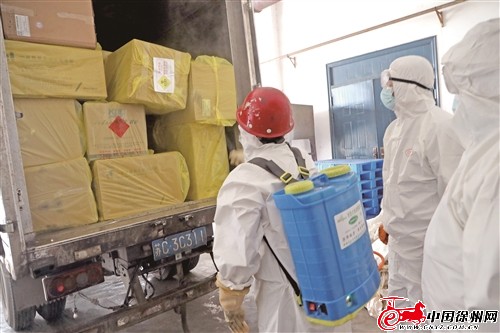 经过近20分钟、十多公里的密封运转,来自徐医附院东院的一箱箱核酸检测棉签被送到了徐州市危废中心。
