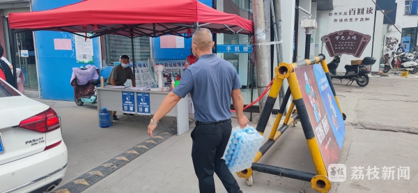 “你们在这里辛苦了,我给大家带来了一些慰问物资,是咱们大刘村的爱心人士捐赠的,也是希望大家能够不畏艰难,继续严守我们的防疫点,保卫大刘村民平安。”徐州市铜山区大彭镇大刘村党支部副书记郑忠龙说着,把抱着的一捆饮用水,放在了大刘村防控点值班人员的桌上。同行的还有大彭镇农经中心主任徐玉梅,也带着捐赠物资一起慰问防控点一线的工作人员和志愿者们。