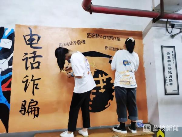 你一笔,我一画,或站着,或跪着,以墙为布,用心作画。今天(8月16日),记者获悉,在常州新城域小区地下停车场,一群可爱的学生用手中的画笔成就了一幅幅生动的反诈墙绘,也给这个地下停车场带来了生趣。