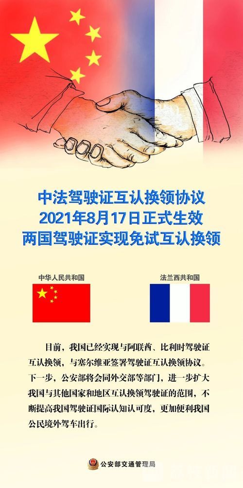 公安部交通管理局今天(8月16日)发布消息:中法驾驶证互认换领协议明天(2021年8月17日)正式生效!根据协议,中法双方承认对方核发的有效驾驶证,一方准许持有对方国家驾驶证的人员在其境内直接驾车或免试换领驾驶证。