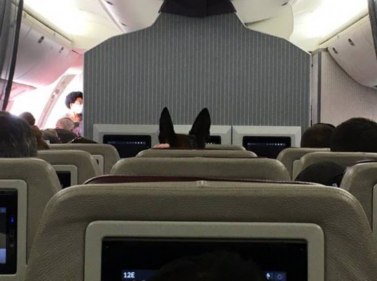 (飞机上的军犬。)