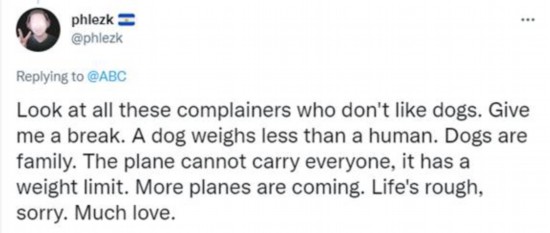 不过,也有网友为美国撤离军犬辩护。有网友称,“狗是家人。这架飞机不能搭载所有人,它有重量限制……”