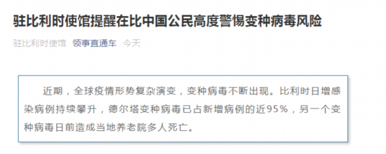 在此,中国驻比利时使馆提醒在比中国公民高度警惕变种病毒风险,切实做好疫情防控: