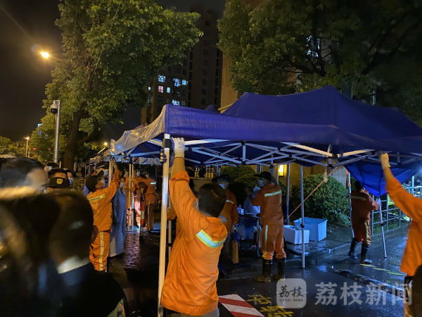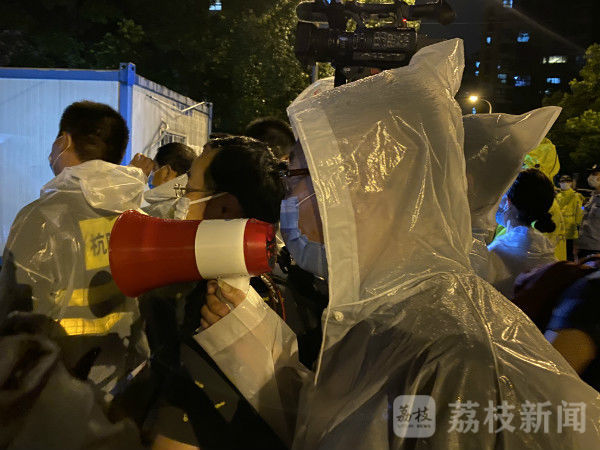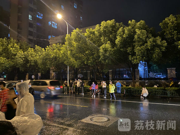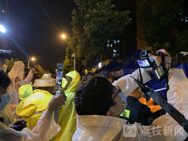 8月16日晚上11点,记者冒雨来到上海市心圆西苑小区门外。这里已经聚集了为解封做最后准备的保障人员、媒体记者和焦急等待小区内亲友“解放”的市民。