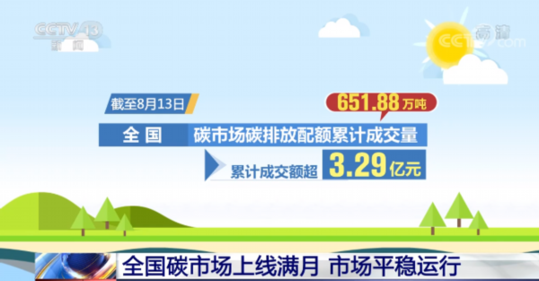 全国碳排放权交易市场自7月16日正式上线交易以来,迎来满月。截至目前,全国碳市场运行平稳,价格稳中有升,累计成交额超3.29亿元。