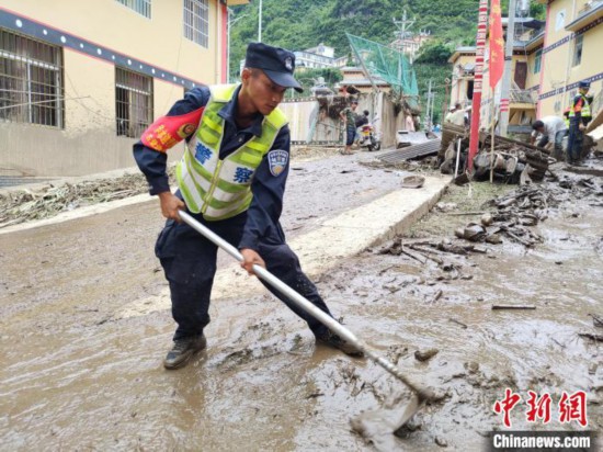 中新网怒江8月17日电(张禾) 记者17日从云南怒江边境管理支队获悉,近日,因突降暴雨,泸水市古登乡马垮底河发生泥石流,该支队古登边境派出所民辅警在泥石流中连续奋战8小时,妥善安置受灾群众48户176人。